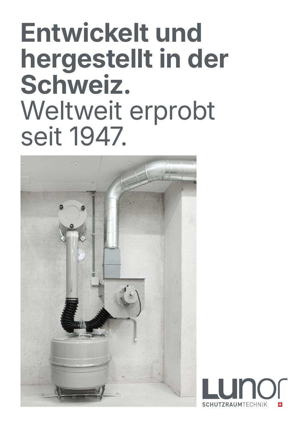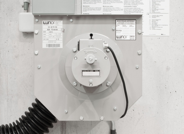 Ventilatoren, Gasfilter und Ventile werden von LUNOR am Hauptsitz in Zürich hergestellt. Sie sind vom Bundesamt für Bevölkerungsschutz (BABS) Labor Spiez geprüft und verfügen über eine gültige BZS-Zulassung. LUNOR verfügt über sämtliche Zulassungen für Komponenten im TWP und TWS-Schutzraum.