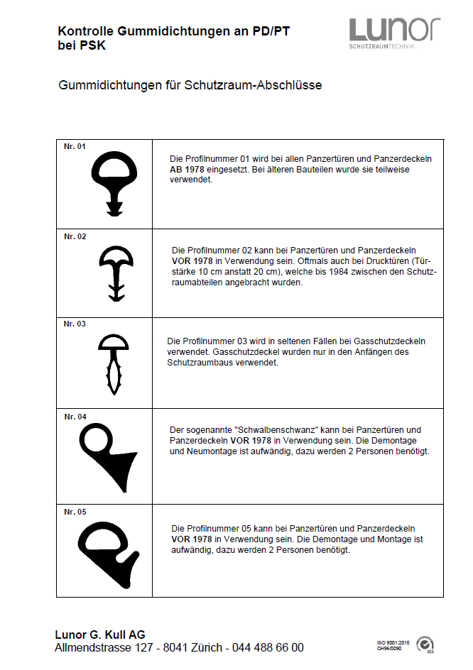 Die Dichtungen härten mit den Jahren aus und werden spröde, wenn diese nicht mit Silikon gepflegt werden. Bleiben Panzerdeckel und Panzertüre längere Zeit geschlossen, deformiert sich die Gummidichtung und muss ersetzt werden. HIER finden Sie alle gängigen Typen.